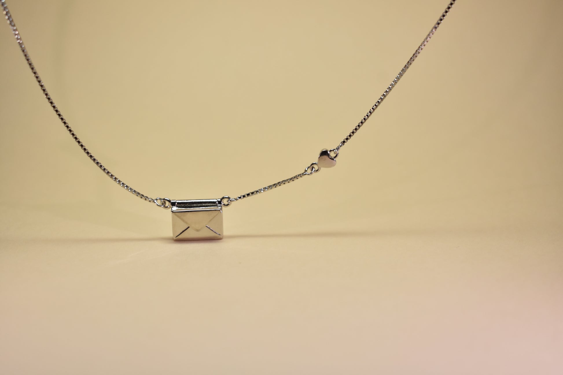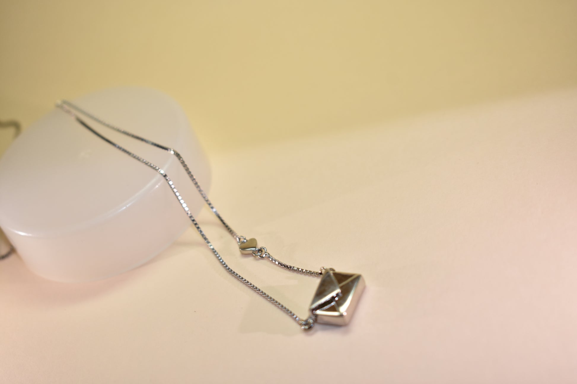 Add a touch of celestial elegance to your jewelry collection with the Envelope Pendant Chain. Crafted from high-quality 925 sterling silver, this necklace features a delicate chain with a little heart detail, catching the light with every movement. Perfect for adding a subtle yet sparkling touch to your everyday look or special occasion attire.